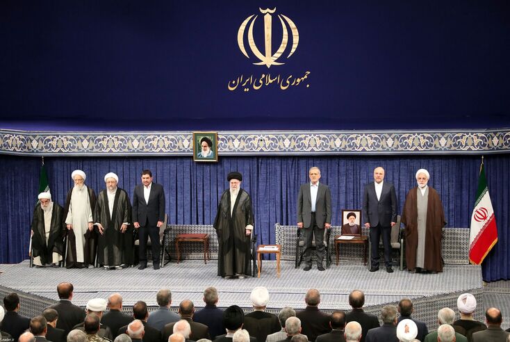 مراسم تنفیذ حکم رهبر معظم انقلاب به  دکتر پزشکیان با حضور آیت الله آملی لاریجانی، سران قوا و مقامات کشوری