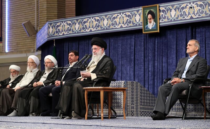 حضرت آیت‌الله خامنه‌ای رهبر معظم انقلاب اسلامی صبح روز یکشنبه 7 مردادماه 1403 در مراسمی با حضور مقامات کشوری و لشکری، نمایندگان قشرها و صنوف مختلف، جمعی از خانواده‌های معظم شهدا و سفیران مقیم و بر اساس بند ۹ اصل ۱۱۰ قانون اساسی رأی ملت ایران به آقای دکتر مسعود پزشکیان را تنفیذ و ایشان را به‌عنوان رئیس جمهور اسلامی ایران منصوب کردند.