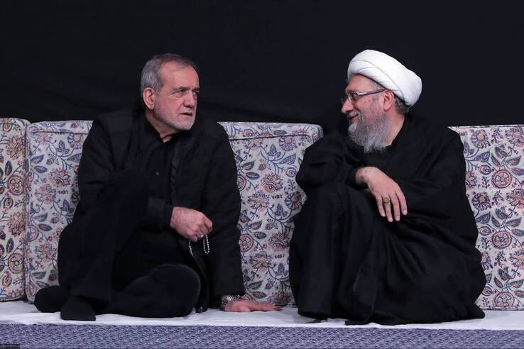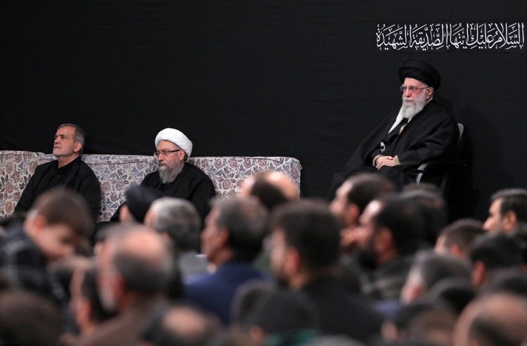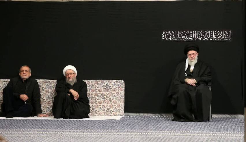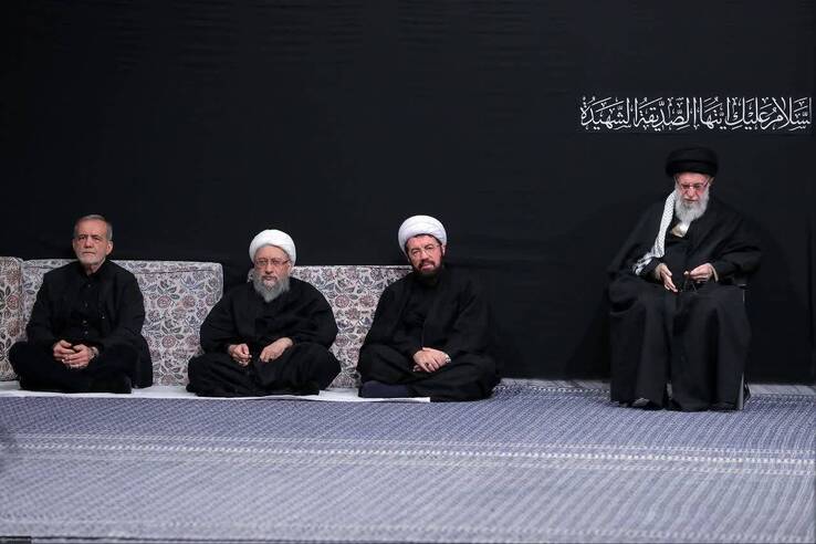 مراسم عزاداری شام شهادت حضرت فاطمهزهرا سلاماللهعلیها در محضر مقام معظم رهبری با حضور آیت الله آملی لاریجانی و جمعی از مسئولان نظام در حسینیه امام خمینی(ره) برگزار شد.