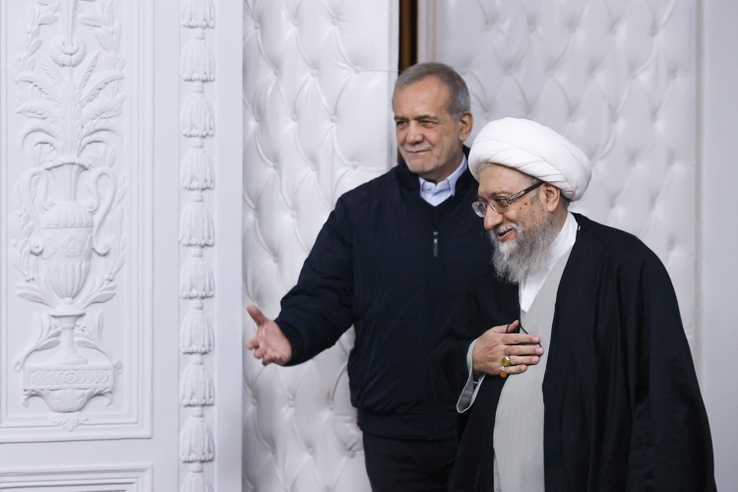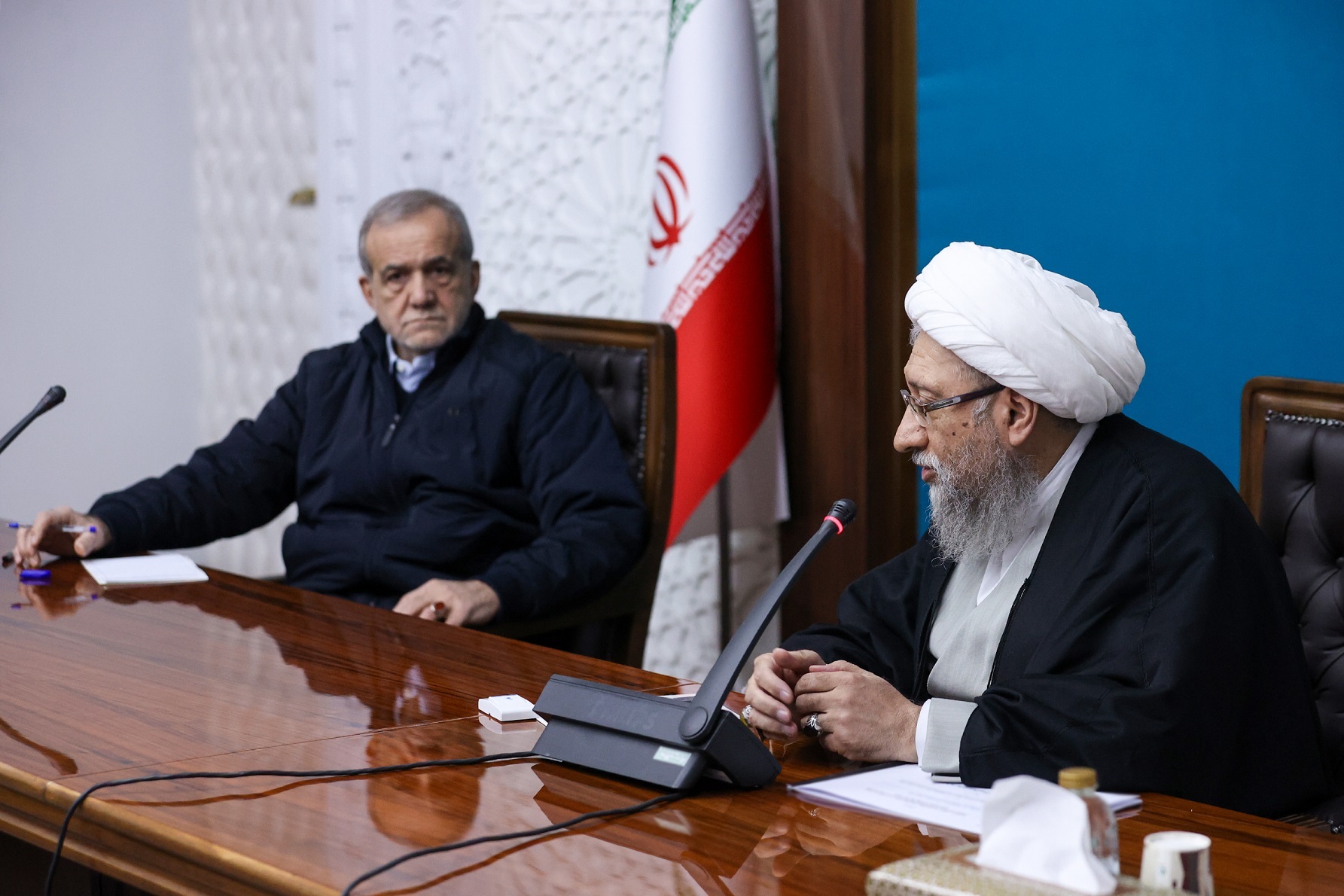 آیت الله صادق آملی لاریجانی رئیس مجمع تشخیص مصلحت نظام و جمعی از اعضای هیئت عالی نظارت مجمع، صبح روز شنبه 20 دی ماه 1404 با حضور در نهاد ریاست جمهوری با دکتر مسعود پزشکیان رئیس جمهور دیدار و گفتگو کردند.